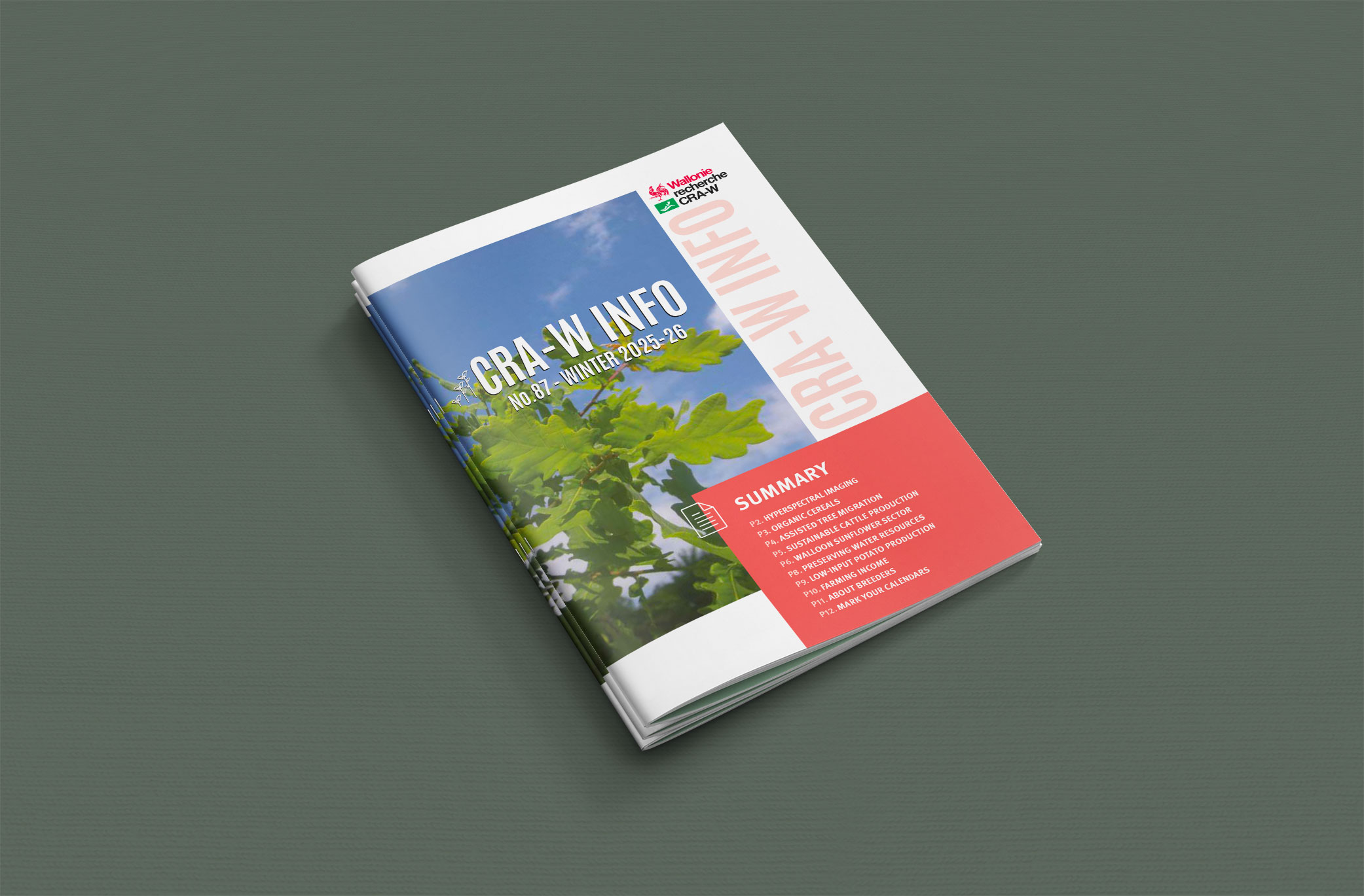 Refonte totale de la brochure trimestrielle du Centre wallon de Recherches agronomiques à Gembloux.